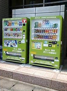 山梨県は、緑豊かな森林浴とグリーンの色彩浴の効果たっぷりの土地です。その美しい緑の景観を損なわずに、暗い夜道をお子さんからご年配の方まで安全をもたらし、地域の防犯率を減少させるためにと、写真にありますように、自動販売機のカラーを若草色という少しくすんだ落ち着きのある緑色に選定いたしました。